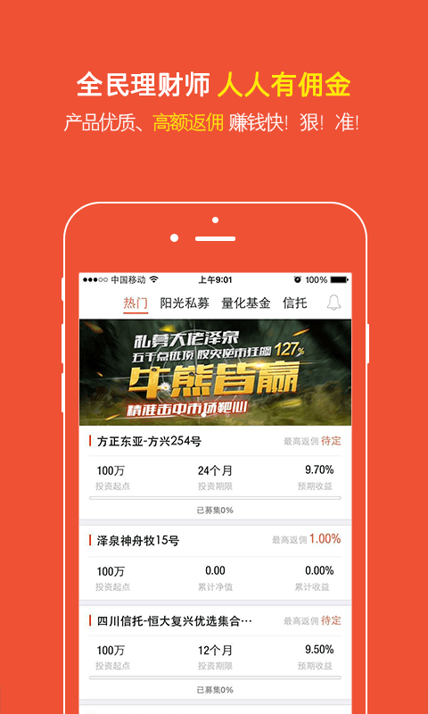 APP鎻愪緵浼樿川淇℃墭銆侀槼鍏夌鍕熴侀噺鍖栧熀閲戠瓑澶氬厓鍖栫悊璐骇鍝併傞氳繃瀹炲悕鍜岃韩浠借璇佽幏寰楄嚜鐢辩悊璐㈠笀韬唤锛屾柟渚垮湴涓哄鎴烽绾︿骇鍝侊紝瀹屾垚浜ゆ槗骞惰禋鍙栦剑閲戙傛櫘閫氭姇璧勮呬篃鍙氳繃APP杩涜浜у搧棰勭害鐢宠喘銆