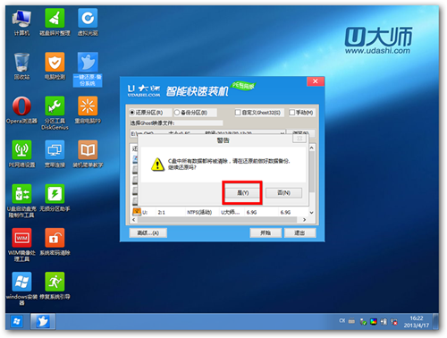 4.在提示框中,单击“是”按钮,接下来系统的安装将会自动运行,如图: