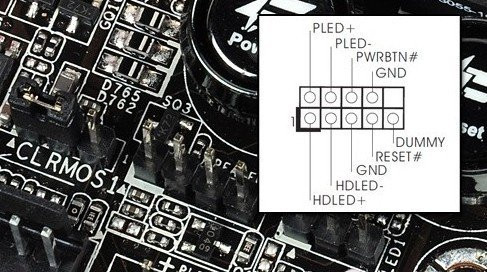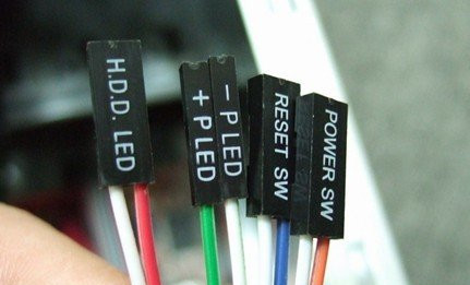 这也是很多新手朋友装机十分头疼的问题,主要是涉及到电源机箱开机按钮、重新启动按钮以及机箱电源指示等线的连接。接法对照如下图: