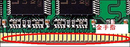 内存条金手是内存条上与内存插槽之间的连接部件,由众多金黄色的导电触片组成的部分,信号都是通过他进行传送的。因其表面镀金而且导电触片排列如手指状,所以称为“金手指”。如下图所示: