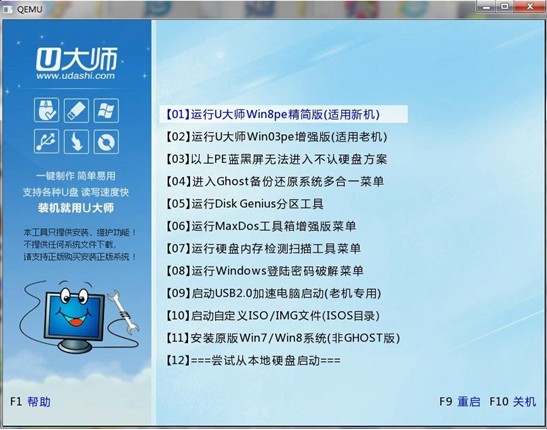 4.将U盘插上电脑,从U盘启动电脑,进入U盘菜单选择界面,可以根据自己的需求选择对应的选项,这里选择【1】。