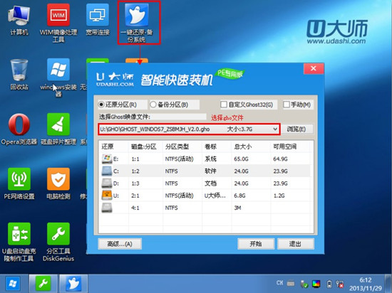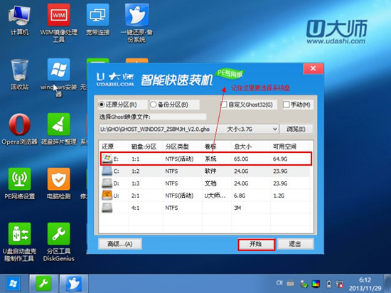 12.选择好gho文件后,选择系统安装目录(记住这里一定要选择系统盘),点击“开始”,如图: