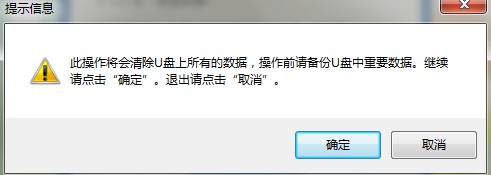 弹出提示框,提示U盘重要数据备份,若U盘有重要数据的可以先单独备份,避免数据丢失,若已经备份则点击“确定”开始制作USB启动盘。