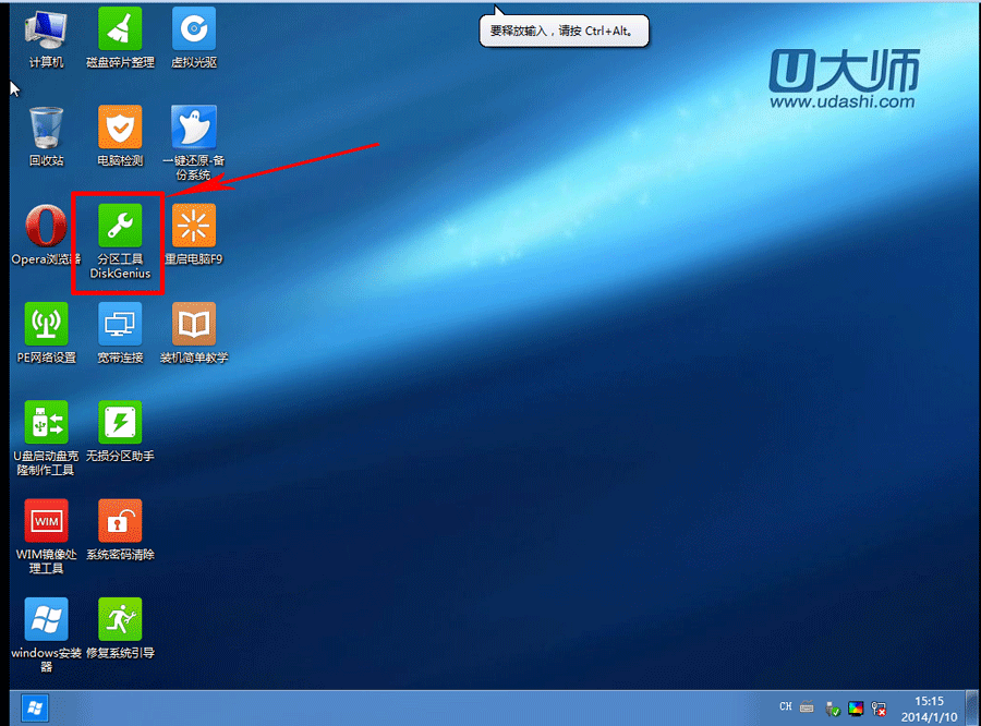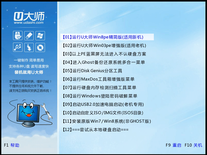 1、用U大师启动盘启动后进入U大师WIN8pe