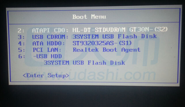 这时已经设置好了u盘启动了,为确实F12是否开启,我们在开机的时候按下F12,就会出现下图界面,找到3SYSTEM USB Flash Disk,然后回车: