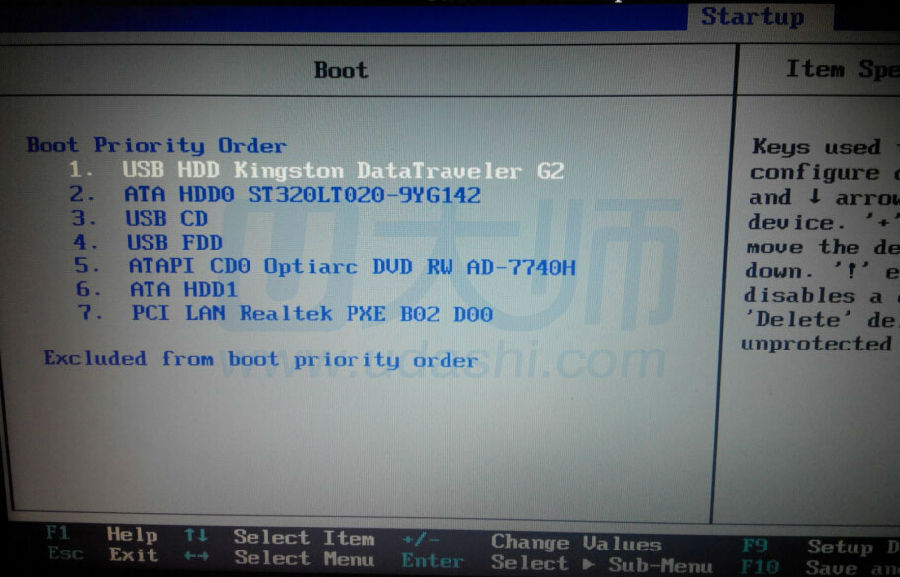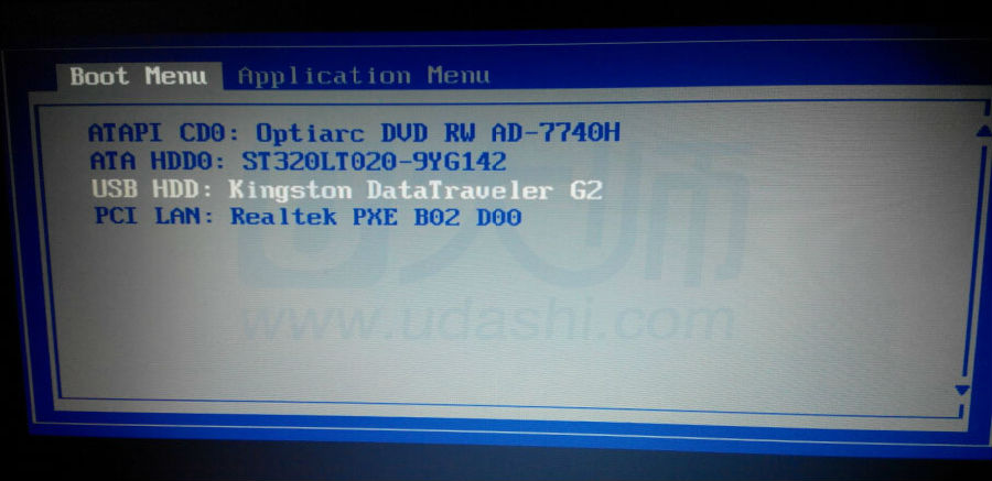 或者在开机的时候按F12,出现下图界面,只需要上下移动光标,选择USB HDD KINGSTON DataTraveler G2,然后回车,便可设置成功: