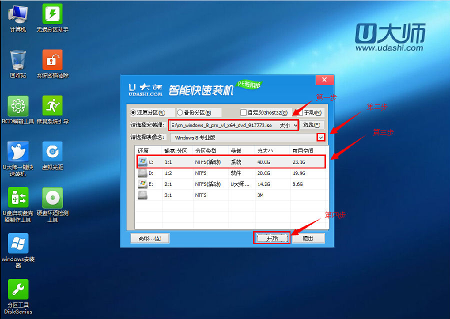 第三步、用U盘启动快速安装系统: