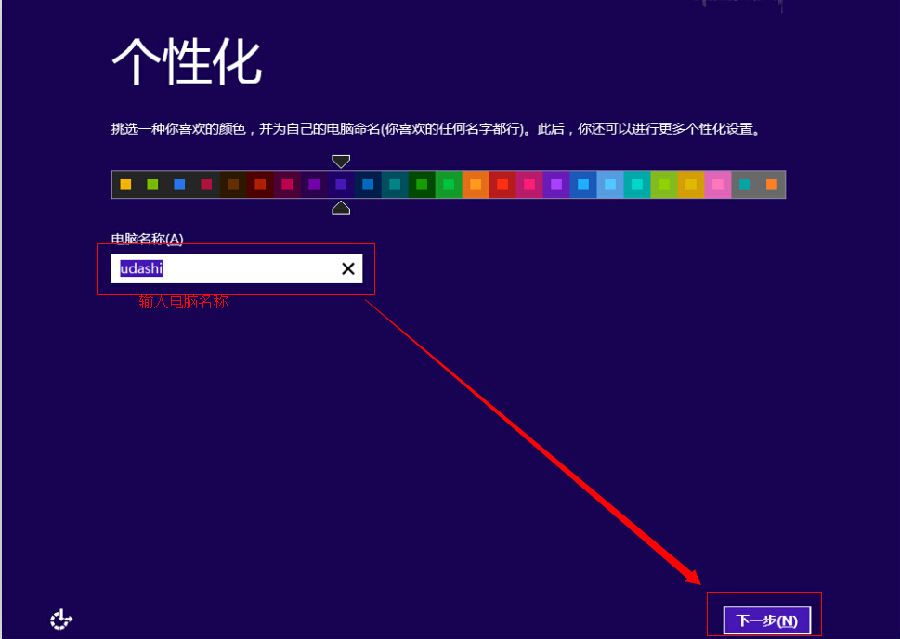 6、然后输入电脑名称,再点击下一步: