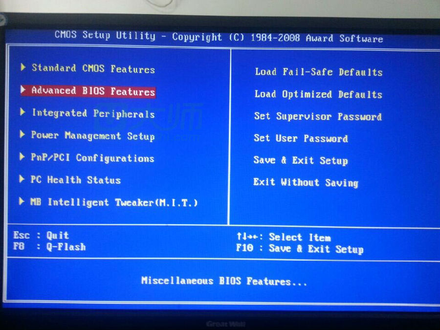 1、开机狂按DEL,进入主板bios,点击Advanced BIOS Features: