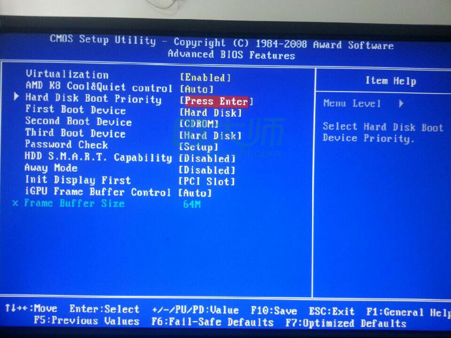 2、然后就会出现下图所示界面,找到HARD DISK Boot Priority,然后回车: