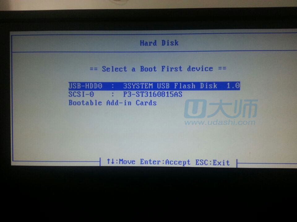 6、找到USB-HDD选项,回车即可: