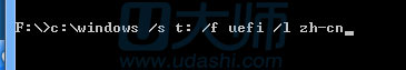 /f uefi 指定启动方式为uefi,注意之间的空格一定要输入。