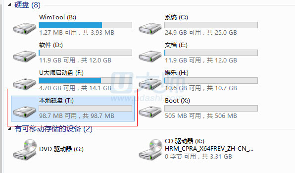完整输入以上命令后,回车,开始创建C盘UEFI引导文件。等完成后,打开计算机,查看一下t盘是否有增加一个efi的文件夹。如果有,说明引导创建成功了: