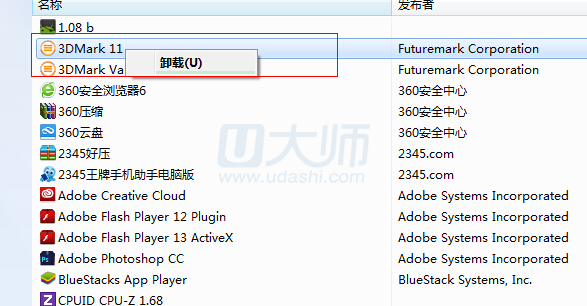 3、然后就会出现我们安装的程序,只需要右键,然后点击卸载: