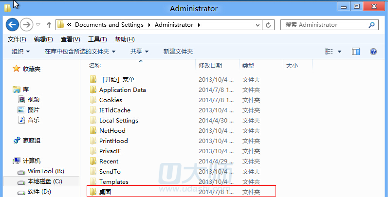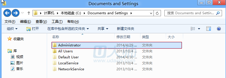 3、然后点击我们在xp下建立的用户帐户名命名的文件夹,小编的是Administrator: