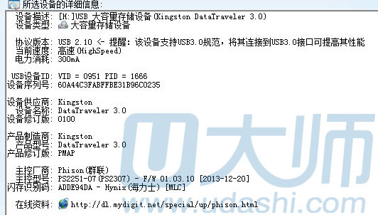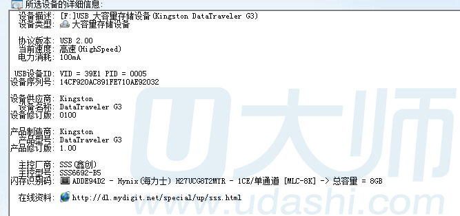 如图所示(这是3.0的接口,值得一说的是协议版本是2.1,只是在小u的计算机上并没有安装3.0的接口与驱动所以不能为其提高性能,但是3.0也是兼容一下版本的,所以使用起来并无大碍)今天就为大家介绍到这里,如有疑问,请咨询u大师客服