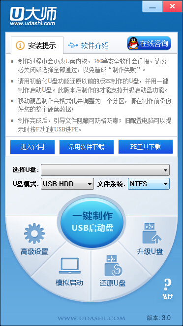 点击查看:u大师u盘启动盘制作工具专业版V3.0