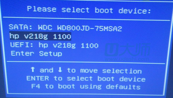 2.选择hp v218g 1100然后回车即可进入到u大师的主界面: