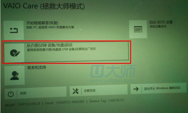 2.然后按照下图所示操作,点击从介质(usb设备/光盘)启动: