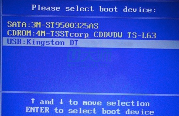 2.选择u盘即USB:KINGstone DT,回车即可进入u大师u盘启动盘制作工具的选择界面: