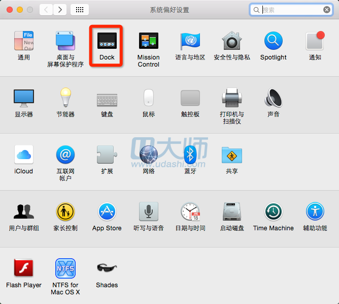 1.首先不难发现系统偏好设置小化时是在右侧: