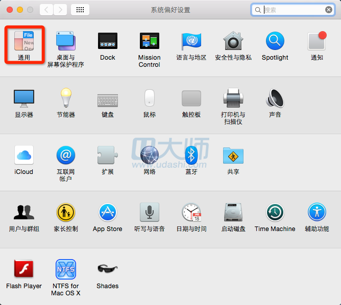 1.打开系统偏好设置,点击通用: