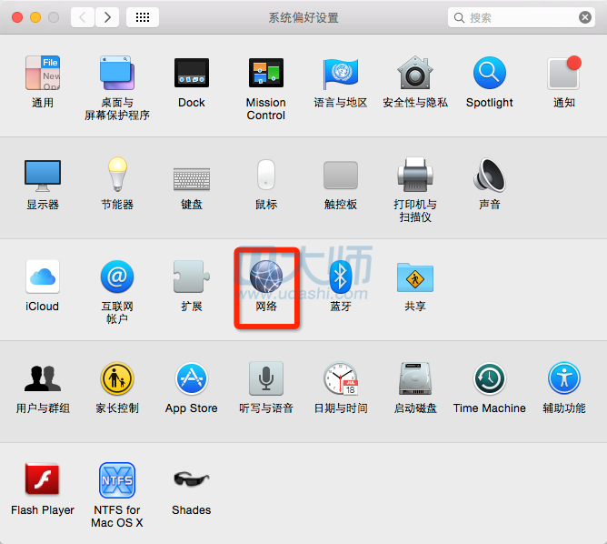 1. 打开系统偏好设置,然后点击网络: