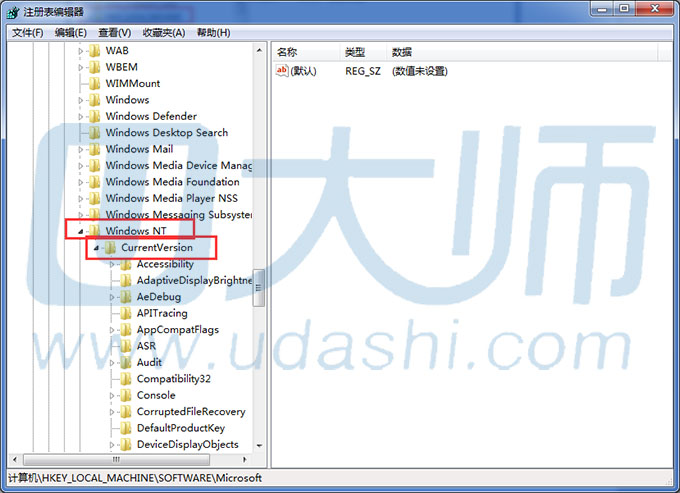 3、找到“Windows NT”,,打开它,找到里面的子文件夹“CurrentVersion”