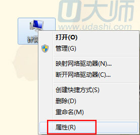 1.右键单击桌面“计算机”图标,在选择窗口点击“属性”: