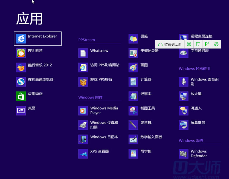 2.在metro界面就可以进行以往在开始菜单的操作了: