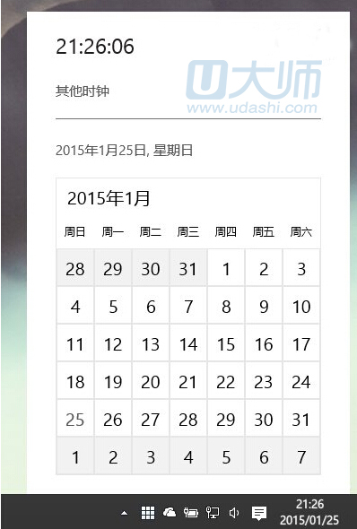 4、后,点击系统右下方任务栏种的时钟托盘即可看到全新的托盘时钟界面。