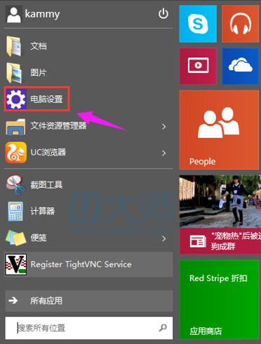 1.桌面点击“开始菜单”,在点击“电脑设置”: