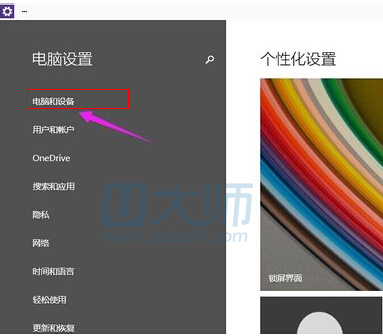 2.在“电脑设置”下面点击“电脑和设备”: