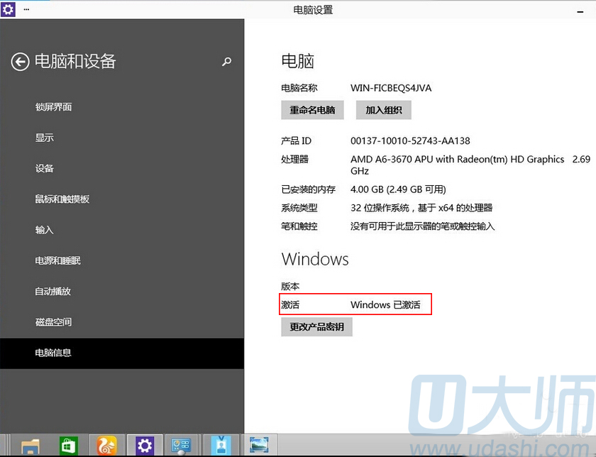5.激活成功后,在电脑信息里可以看到时候已经激活了windows10: