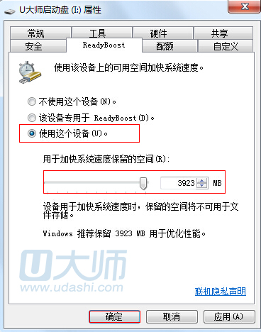 通过以上设置就能实现ReadyBoost功能增强电脑性能的操作,但是大家需要知道并不是启用该项功能就能直接提升系统运行速度,而是需要在内存压力较大和硬盘读写频繁的状态下,系统才会响应地更迅速。