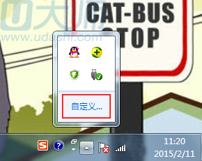 1.在桌面右下角任务栏上的小三角形图标(显示隐藏的图标),点击它,然后点击“自定义”: