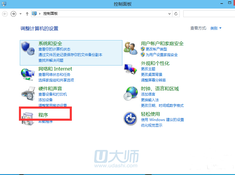 3.在程序窗口找到并点击“启动或关闭windows功能”: