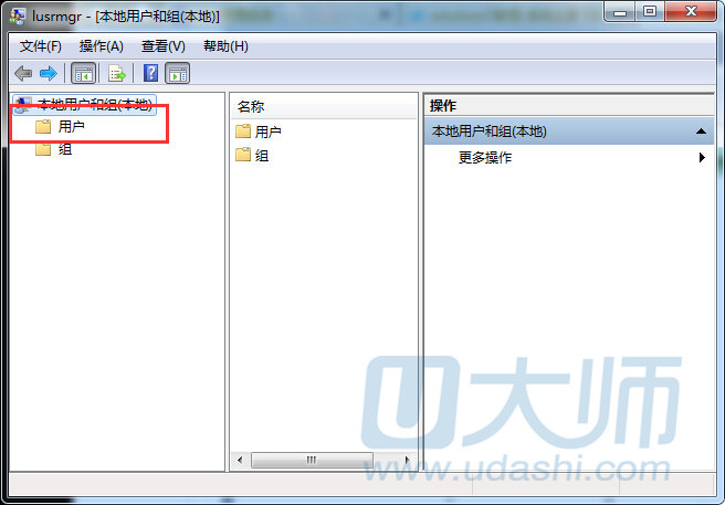 2)在弹出的“本地用户和组”窗口的左侧,点击“用户”,如下图所示: