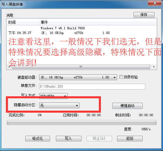 特殊情况:制作完了uefi启动盘之后,发现要放入系统,而系统文件大于4G,而我们的启动盘默认制作成fat32格式,那么你就要设置他的隐藏方式,如上图所示,将其设置成高级隐藏,然后再行制作,制作完成之后,格式化U盘,将U盘格式化成ntfs格式,这样就可以重新放入4G以上大小文件了,而且不影响启动盘的使用!