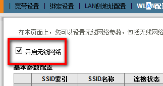 4. 我们注意在此页面上方的有个开启无线网络,在其前面的方框内打上勾,如下图所示