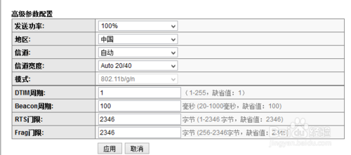 6. 在高级设置里面我们可以设置相关参数,下面一一为大家解读:发送功率——就是信号强度、信道——以无线信号作为传输媒体的数据信号传送通道(这个默认即可)