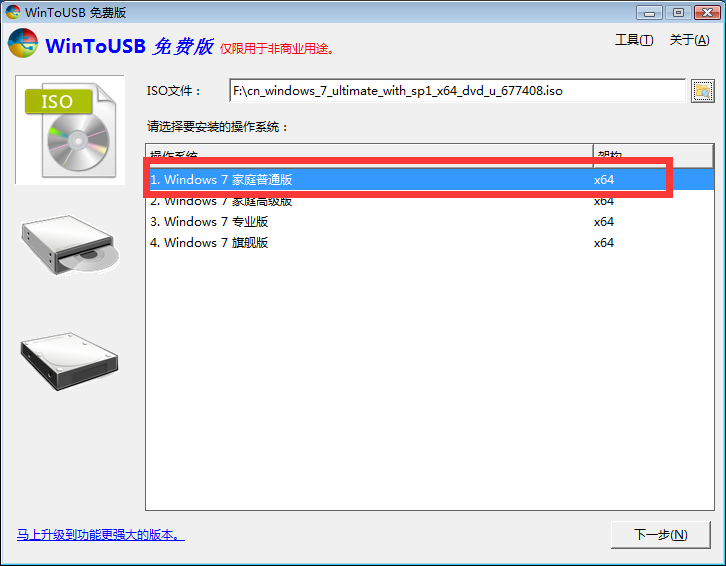 打开之后,我们选择自己想要安装的系统,这里以win7原版为例,我们选择专业版来制作!