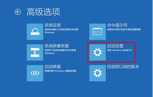 5、“高级选项”中有多个选项,找到并打开“启动设置”;