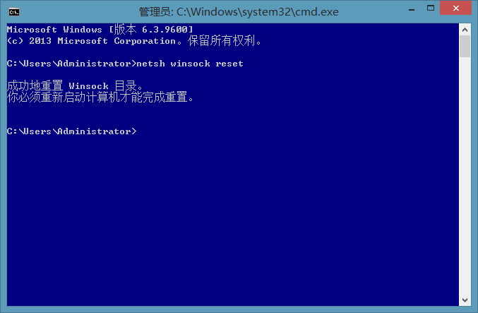 输入之后再弹出的命令窗口中,我们输入netsh winsock reset