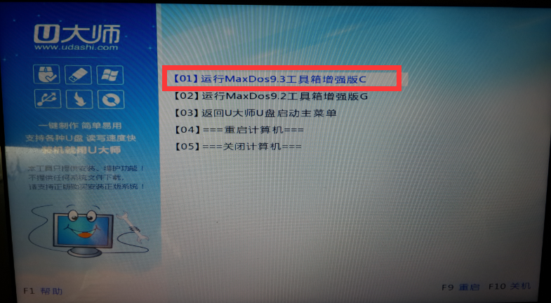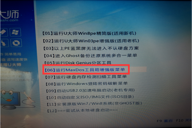 启动u大师后,我们选择运行maxdos工具箱增强版