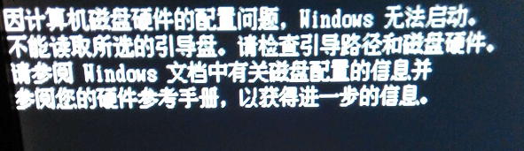 小编近收到的反馈比较多,各种莫名奇妙的问题,比如下图,磁盘配置问题,windows无法正常启动。