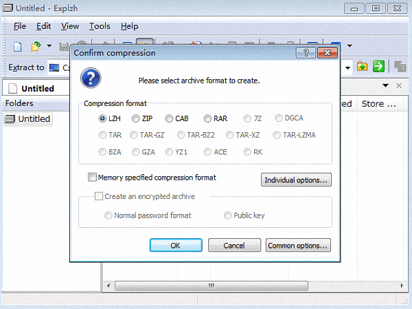 如果使用Explzh创建压缩包的话,默认格式为LZH,这个应该是Explzh的独有格式,为了方便使用,建议在设置中把这项改成zip。
