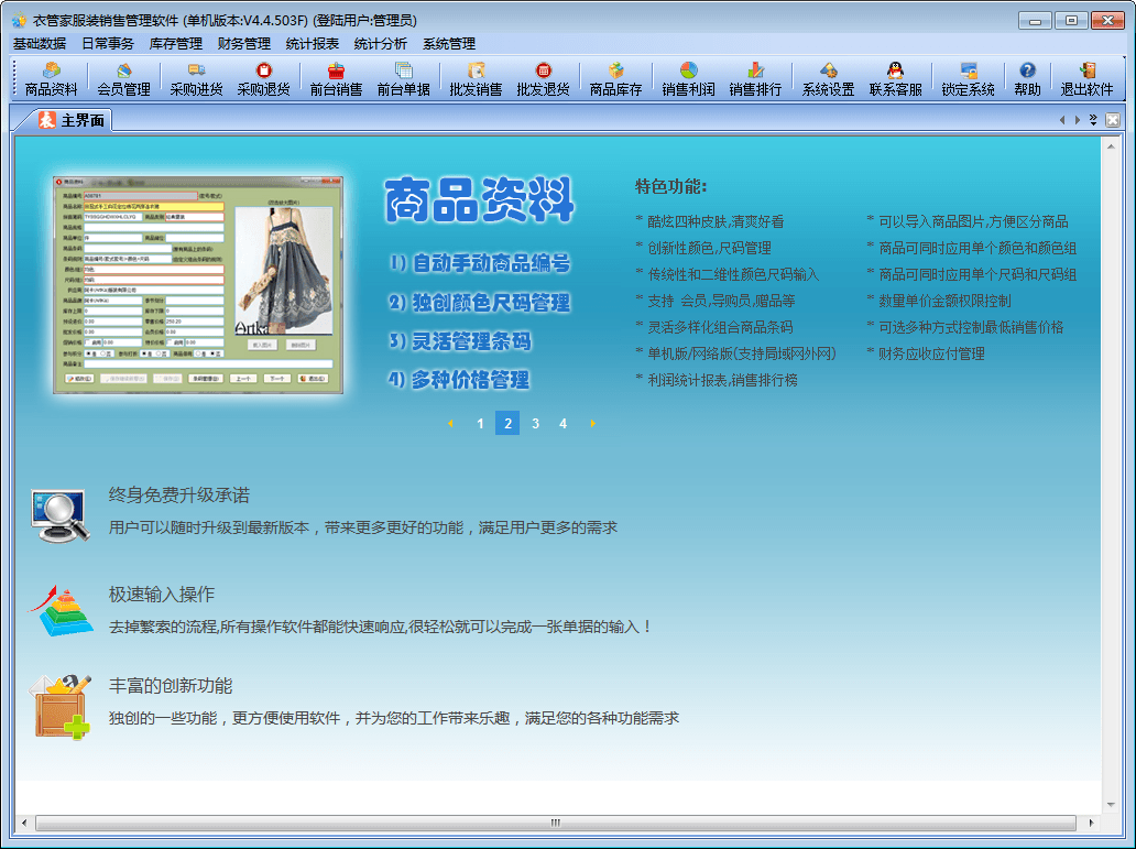 衣管家服装销售管理软件是一款功能强大的销售管理软件,该软件拥有清新的界面,多样的功能,能够录入服装的采购、销售、库存、财务等数据,更好的实现服装销售的管理!