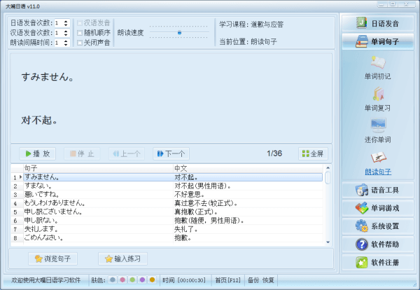 运用国际先进的日语、汉语语音朗读技术(Text to Speech),反复地听纯正的日语,培养语感,彻底摆脱“中国式日语”的困扰。
