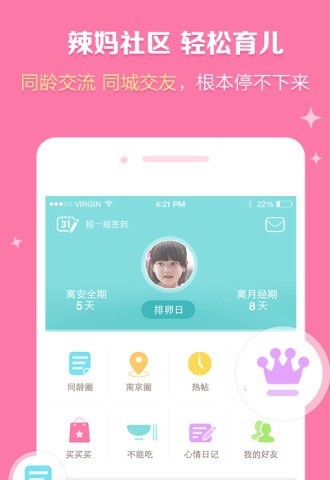 妈妈备孕怀孕育儿的贴心管家,超过3000万妈妈在这里。妈妈社区,贴心呵护备孕、怀孕、产后、育儿、胎动、胎教、儿童早教等各方面问题,新时代辣妈,上妈妈社区就够了!